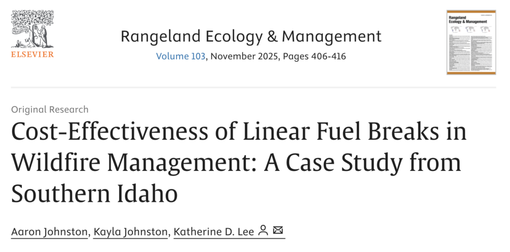 - Cost-Effectiveness of Linear Fuel Breaks in Wildfire Management: A Case Study from Southern Idaho“Linear fuel breaks (LFBs)—strips of land where vegetative fuels are removed or modified—are intended to reduce flame lengths, slow fire spread, and improve access and safety for fire crews.” Read HERE