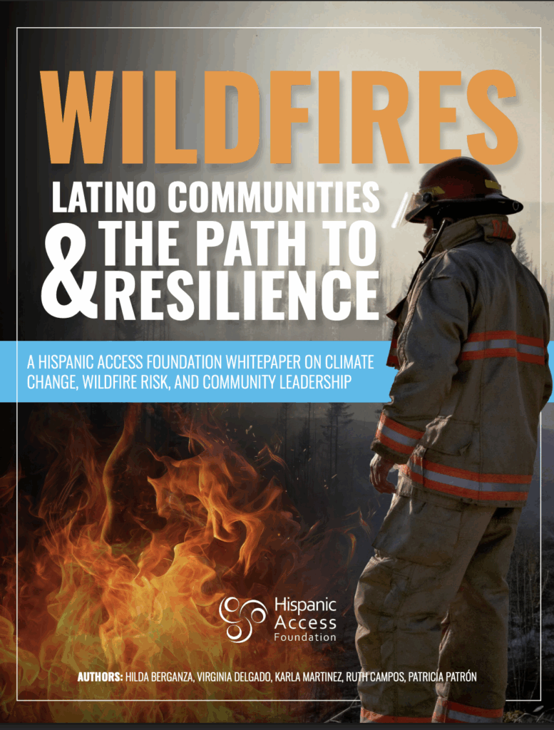 - WILDFIRES:LATINO COMMUNITIES THE PATH TO & RESILIENCE A HISPANIC ACCESS FOUNDATION WHITEPAPER ON CLIMATECHANGE, WILDFIRE RISK, AND COMMUNITY LEADERSHIP Read HERE Additional resources: https://hispanicaccess.org/news-resources/research-library