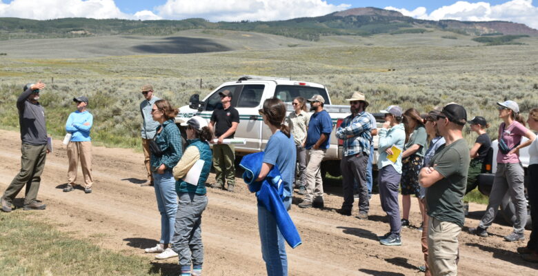 A guided field trip led by Jonathan Coop visited the 2023 Lowline Burn, a roughly 2,000-acre fire in the Ohio Creek drainage. The site illustrated the incredible capacity of aspen to resprout after a high-intensity fire and highlighted spots where aspen stands acted like “speed bumps,” slowing the fire’s spread and helping to contain its perimeter.