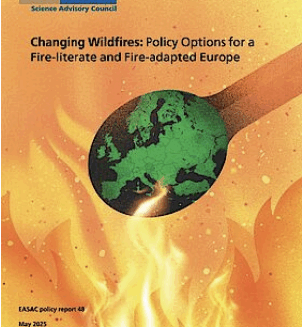 “Elaborated by 23 scientists nominated by their respective national science academies, the new EASAC report highlights the complex drivers behind the surge in wildfire risk. They include climate change, rural depopulation, and land-use changes. Droughts and declining summer precipitation are predicted to double fire risk by 2100. Meanwhile, the abandonment of farmland and unmanaged vegetation growth have created vast landscapes of flammable biomass”.