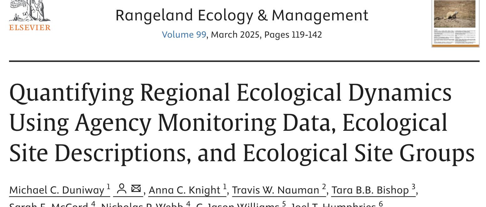 Quantifying Regional Ecological Dynamics Using Agency Monitoring Data, Ecological Site Descriptions, and Ecological Site Groups “Here, we demonstrate a new repeatable workflow for developing data-driven STMs in the United States (US).” Read HERE