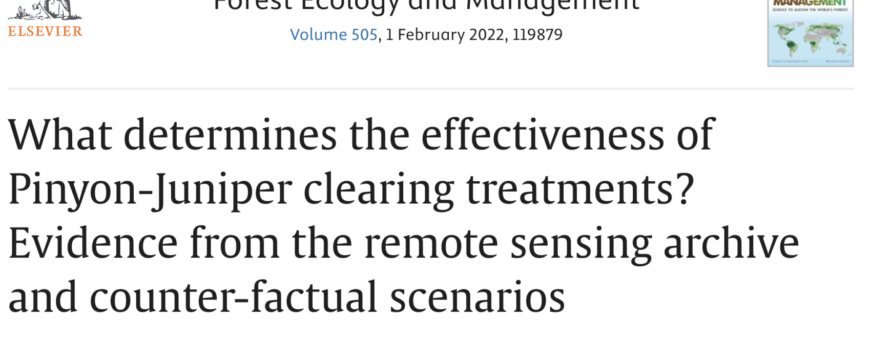 “Here, we evaluated PJ reduction treatment outcomes leveraging large, curated databases of land treatments, new remotely sensed fractional cover time-series products, gridded climate and soils data, and analytical approaches adopted from the econometric literature.”
