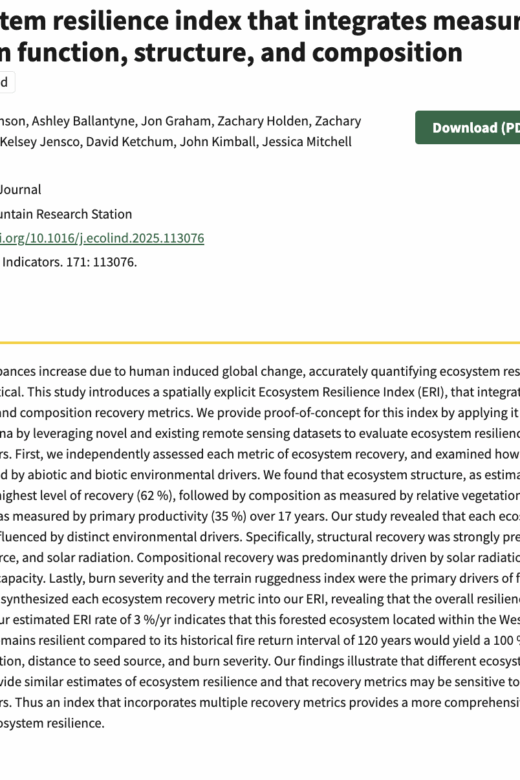 An ecosystem resilience index that integrates measures of vegetation function, structure, and composition "As ecosystem disturbances increase due to human induced global change, accurately quantifying ecosystem resilience has never been …Continue Reading about An ecosystem resilience index that integrates measures of vegetation function, structure, and composition